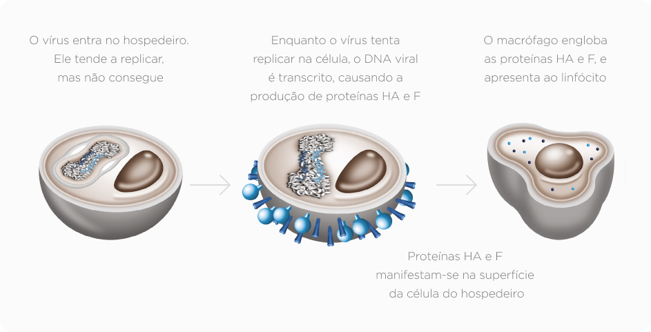 Tecnologia recombinante para cinomose, que induz imunidade precoce mesmo na presença de anticorpos maternos.¹–³